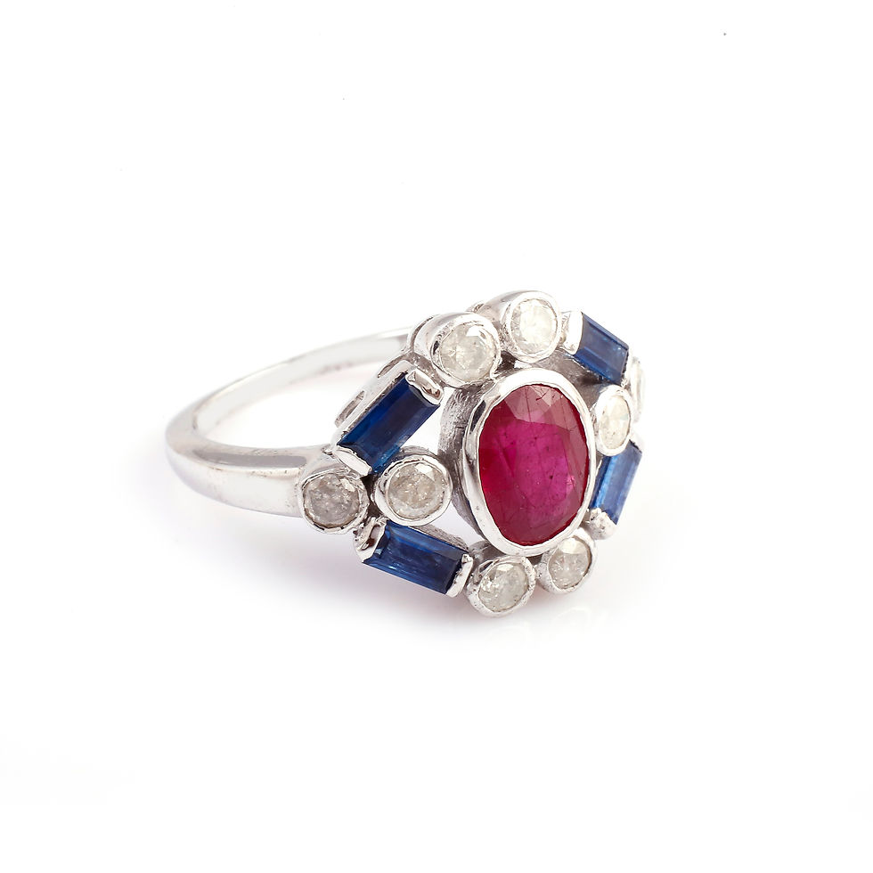 Statement Ruby, Sapphire, Emeralds & Diamonds Ring